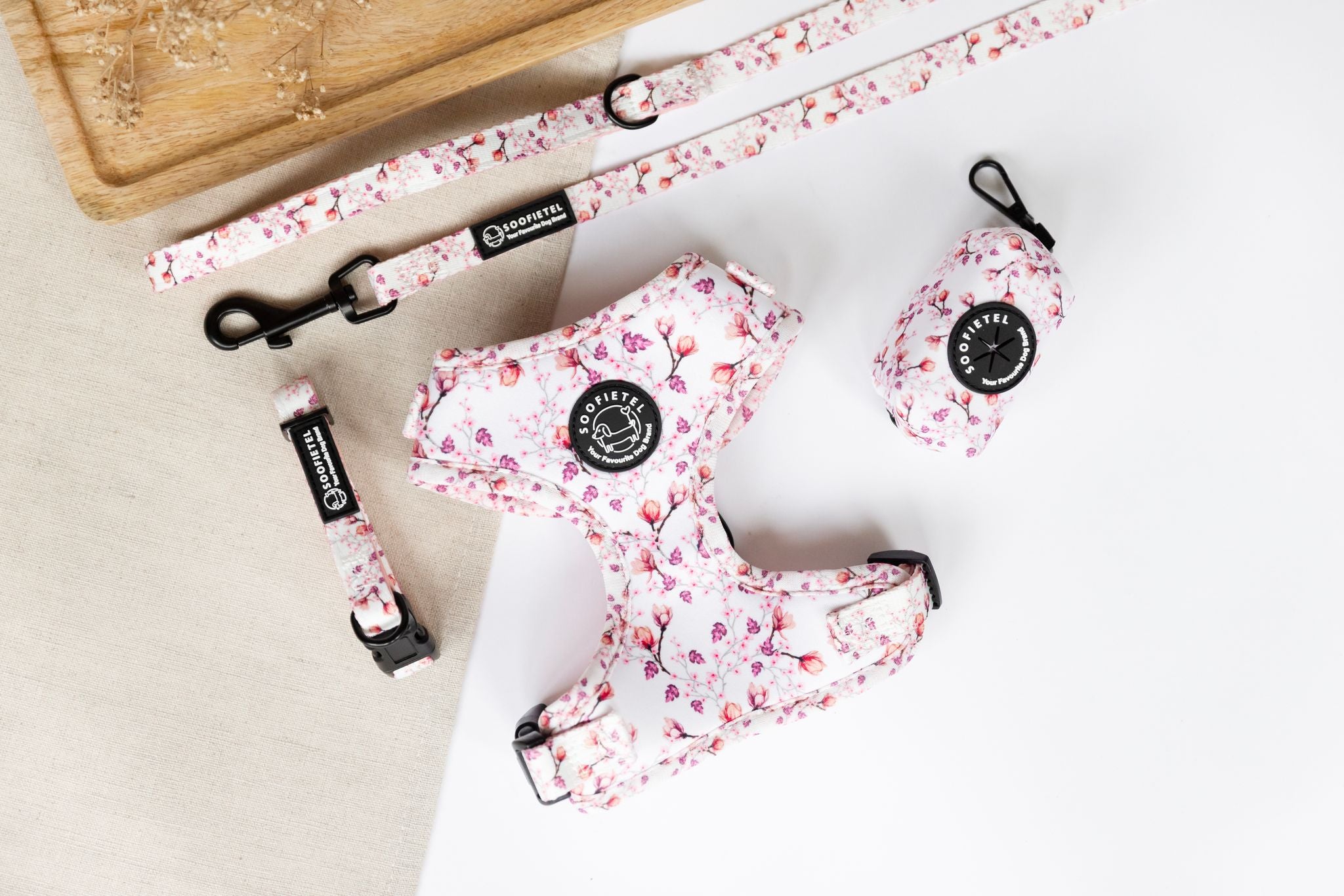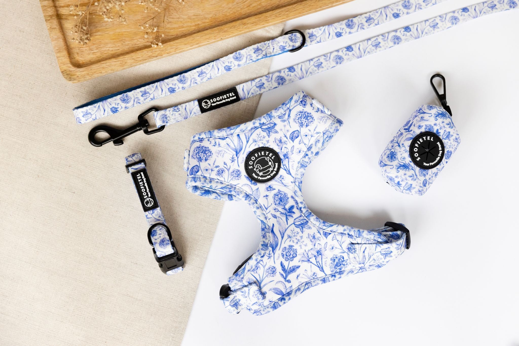 Het design van de 'Blooming pup' collectie is stoer door de donkerblauwe tinten van het design, maar toch ook lief door het schattige kleurrijke bloemen patroon. Deze collectie is afgewerkt met een trendy gouden hardware hierdoor straalt hij ook nog een mooie hoeveelheid klasse uit!